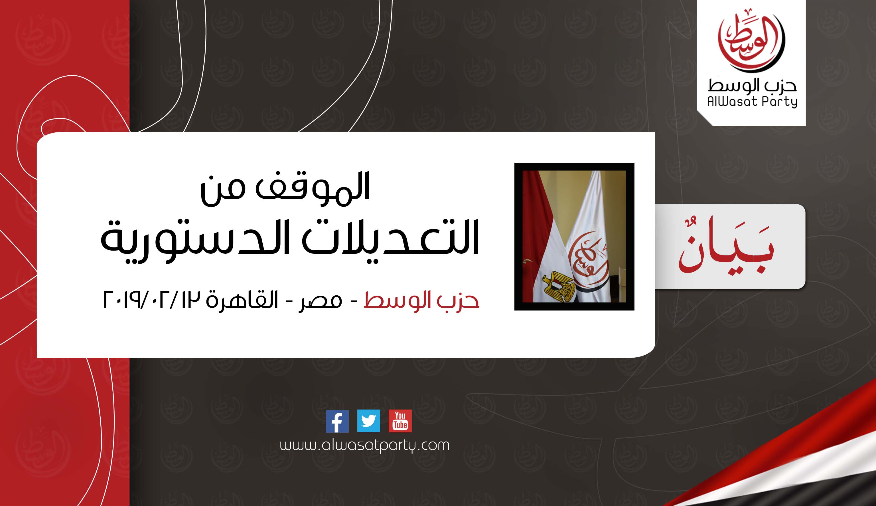 تابع حزب الوسط النقاش الذي جرى أخيرًا حول التعديلات الدستورية، وخاصة بعد تقدُم أكثر من ثلث أعضاء مجلس النواب بطلب يتضمن تعديلات لمواد دستورية وإضافة مواد جديدة، وتمرير هذا الطلب في اللجنة العامة لمجلس النواب، وقرَّر إصدار هذا البيان بموافقة هيئت...